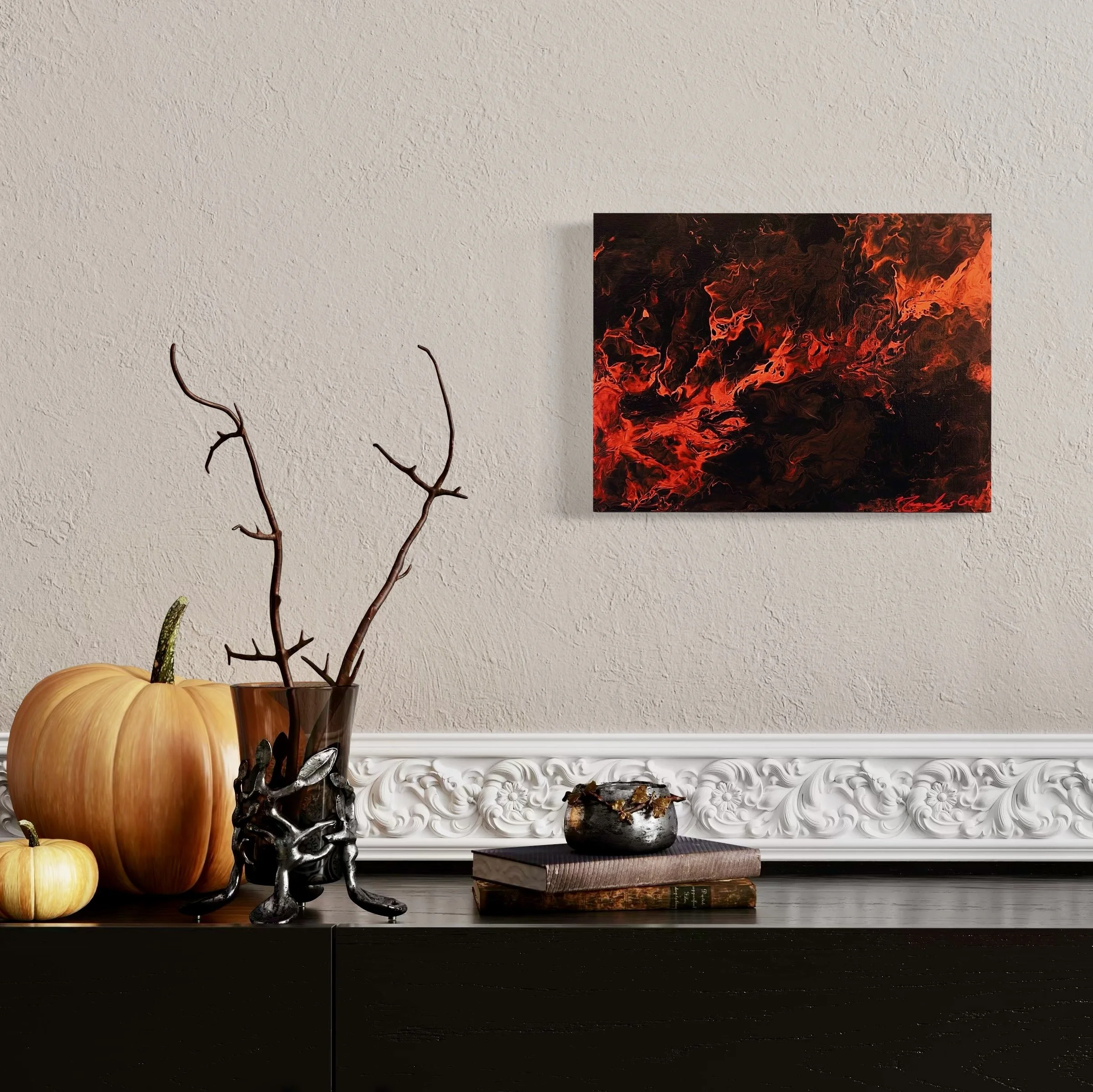 Inspired by Caribbean Culture colors I decided to paint a vibrant tapestry of colorful leaves and daisies that creates a lively dance, inviting the viewer into a whimsical forest fantasy. (this is the reproduction of the original) (THIS IS NOT THE ORIGINAL)